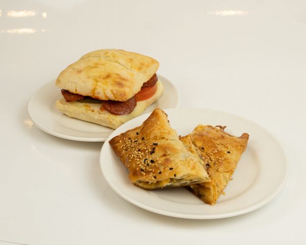 Traditional Turkish savory pastry is made with thin layers of phyllo dough filled with mozzarella - feta cheese and spinach to golden perfection.