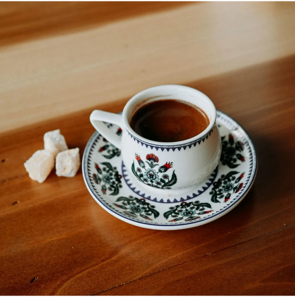 Roasted coffee with mastic gum, chocolate, cardamom, cream, and cinnamon.