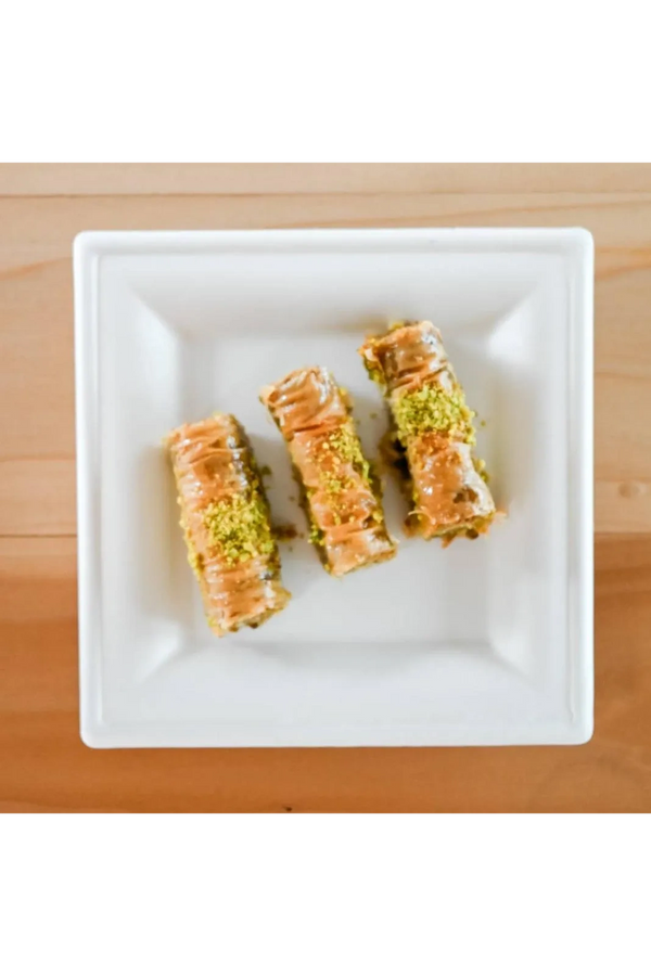 Sweet, flaky pastry made with layers of phyllo dough, filled with chopped pistachios and soaked in syrup